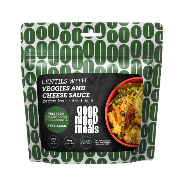 Les lentilles avec légumes et sauce au fromage Good Mood Meals sont conçues pour fournir un repas chaud et nourrissant lors des activités en pleine nature. Cette recette lyophilisée associe des lentilles, des légumes et une sauce au fromage déshydratée, constituant un plat complet adapté aux besoins des randonneurs, trekkeurs et pratiquants d’activités outdoor. Le repas est conditionné dans un sachet permettant une préparation directe dans l’emballage.