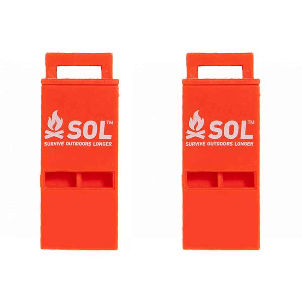Un sifflet de secours constitue un des éléments importants à toujours avoir avec soi lors de sorties en extérieur, que ce soit à la montagne ou à la mer. Un sifflet peut vous permettre d'alerter les alentours et ainsi que les secours sans trop gaspiller votre énergie. Ce pack de deux sifflets Slim Rescue Howler de la marque SOL vous permettra d'être entendu à plus d'un kilomètre autour de vous et fonctionne par tous les temps grâce à sa construction sans bille.
