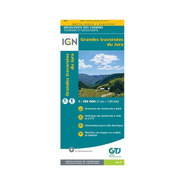 Souvent abrégées GTJ, les Grandes Traversées du Jura peuvent s'effectuer à pied ou en vélo avec cette carte indéchirable conçue par l'IGN. Une aventure hors de commun qui vous fait découvrir des lieux et des paysages magnifiques.